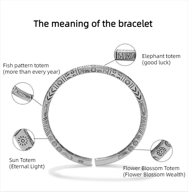 This bracelets is a great symbol for good wishes. The elephant represents good luck and happiness, flowers for rich and fulfillment, sun for everlasting and bright future and fish is for abundant and prosperity. It will be a great gift for yourself, your friends, your family members and your loved ones.