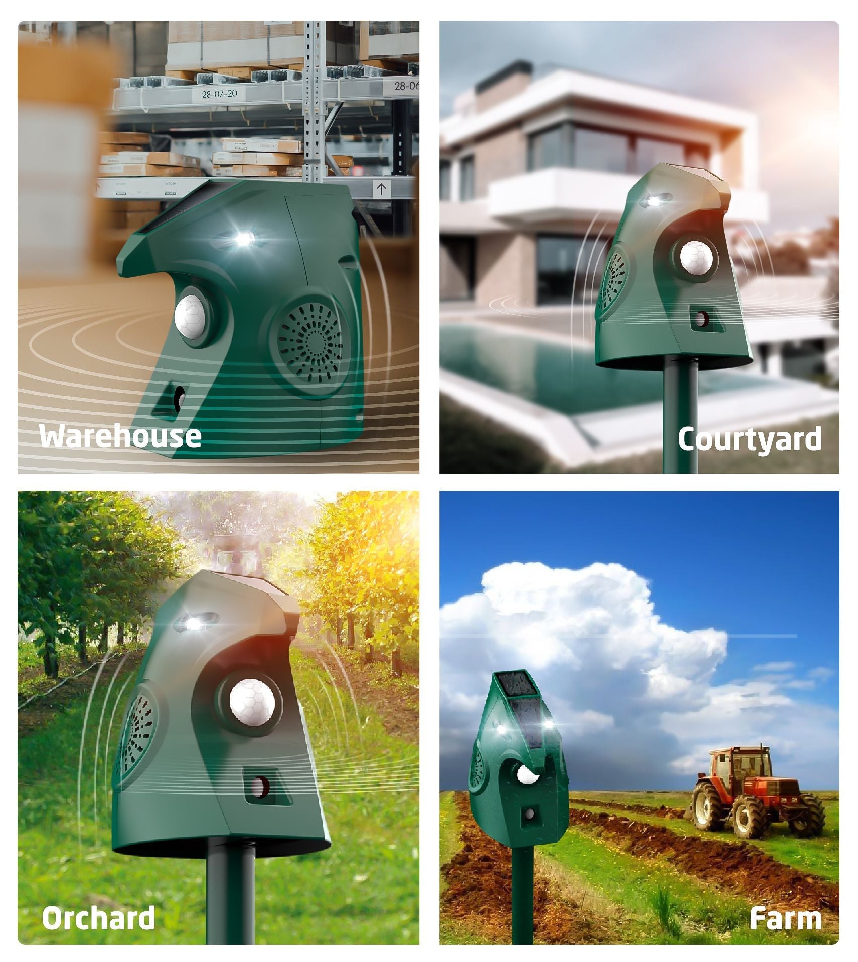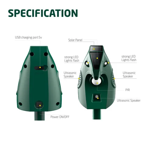 Based on a chemical-free ultrasonic technology, with a modernmotion detection sensor, plus a sturdy waterproof construction, this device is animal-friendly and 100% safe for your kids, keeping at bay rodents, squirrels, cats, dogs and other uninvited guests!