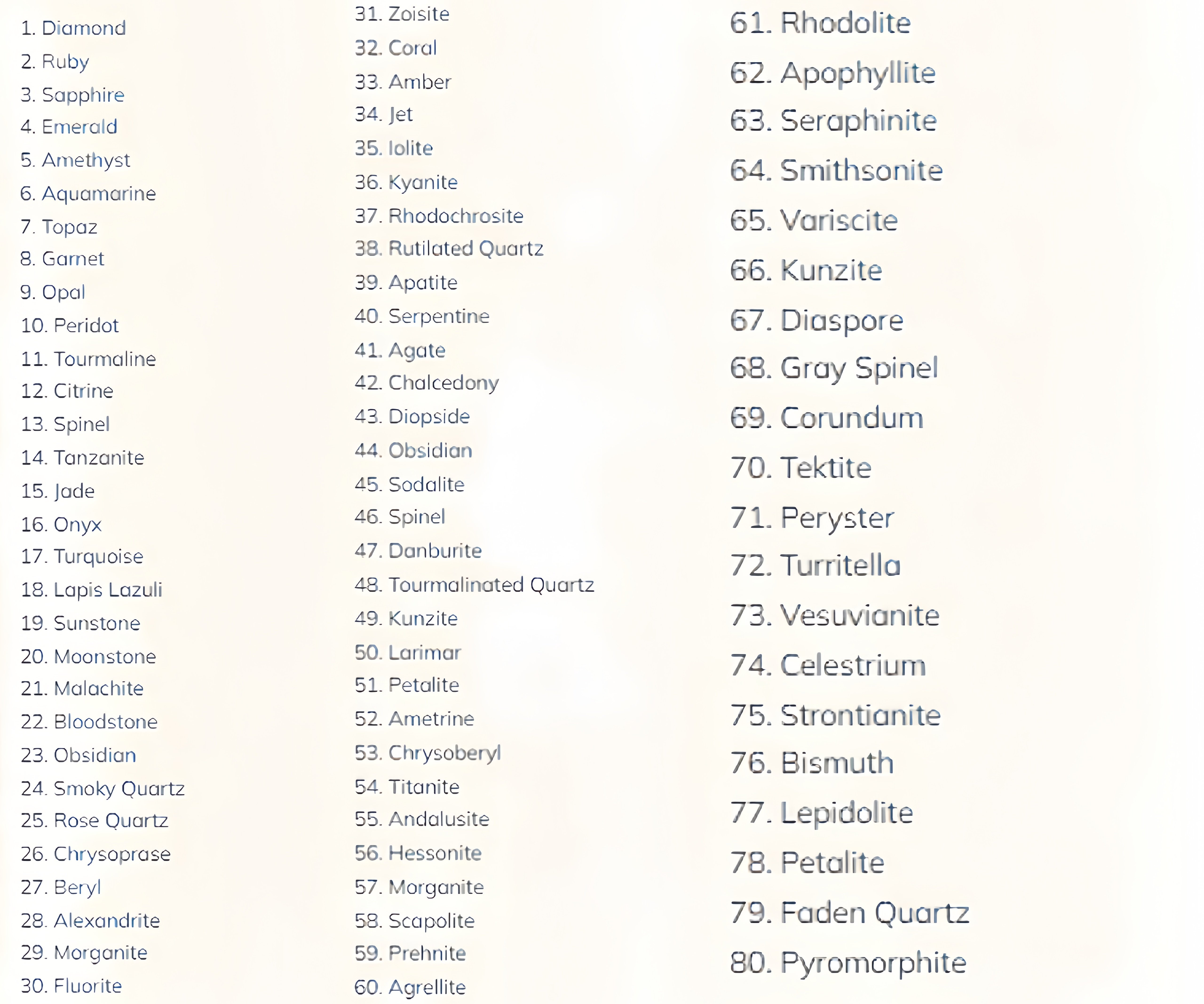 Discover the beauty and diversity of gemstones with our exquisite collection showcasing 80 unique types of natural gems. Perfect for enthusiasts, collectors, or as an educational resource, this stunning display brings the enchanting world of minerals right to your space.