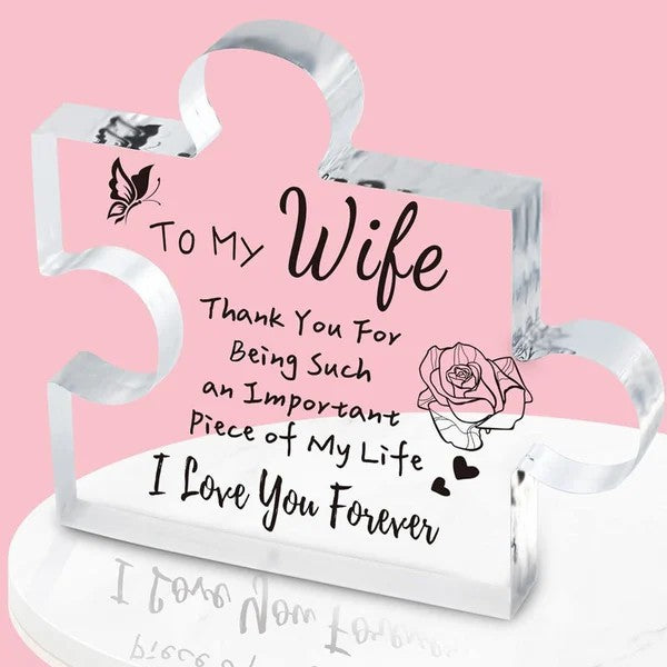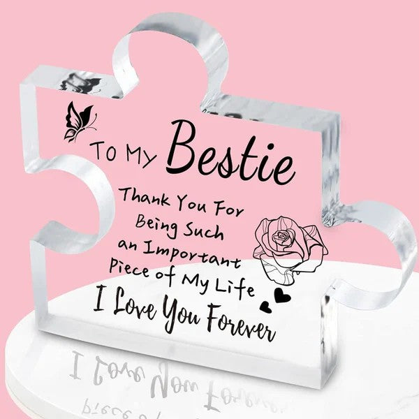 Show your sister how much she means to you with this Puzzle Block Engraved Acrylic Plaque.It carries a warm message that reads, "To my sister, thank you for being such an important piece of my life. I love you forever." A heartfelt gift for your sister that conveys your love and appreciation for your sister.