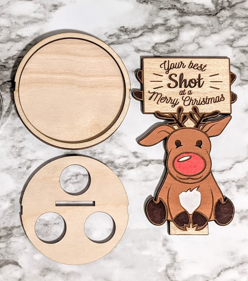 💡 Tips: Made from 5/32 maple wood and hand paint. All the pieces included except the liquor.