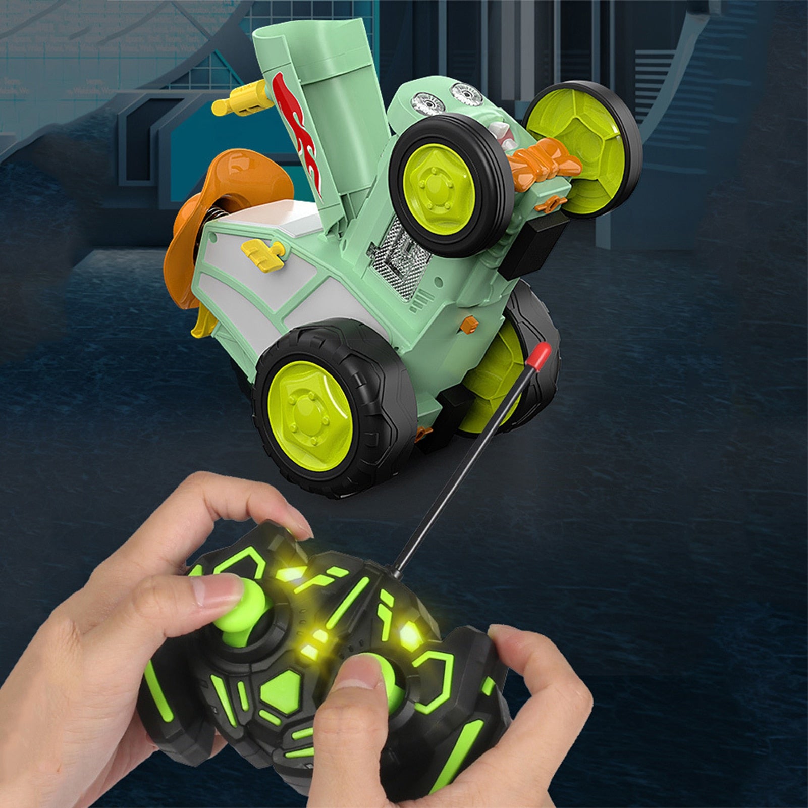 🎢【Crazy Jumping Car】 Remote control stunt car is a new way to play, four wheels can be flipped 360 ° to achieve movement when the front wheel faces up, the head will swing with the movement of the car, instantly transformed into a dancing car.